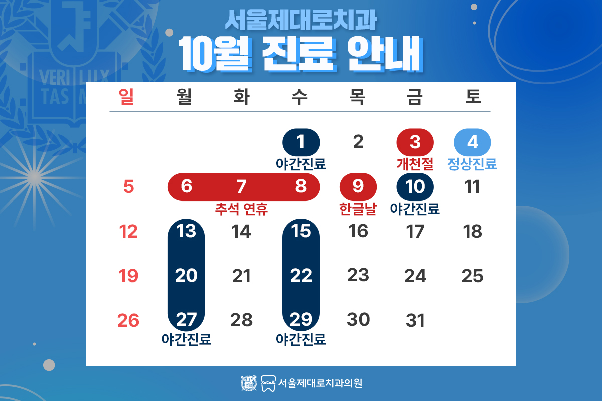 서울제대로치과 11월 진료 안내